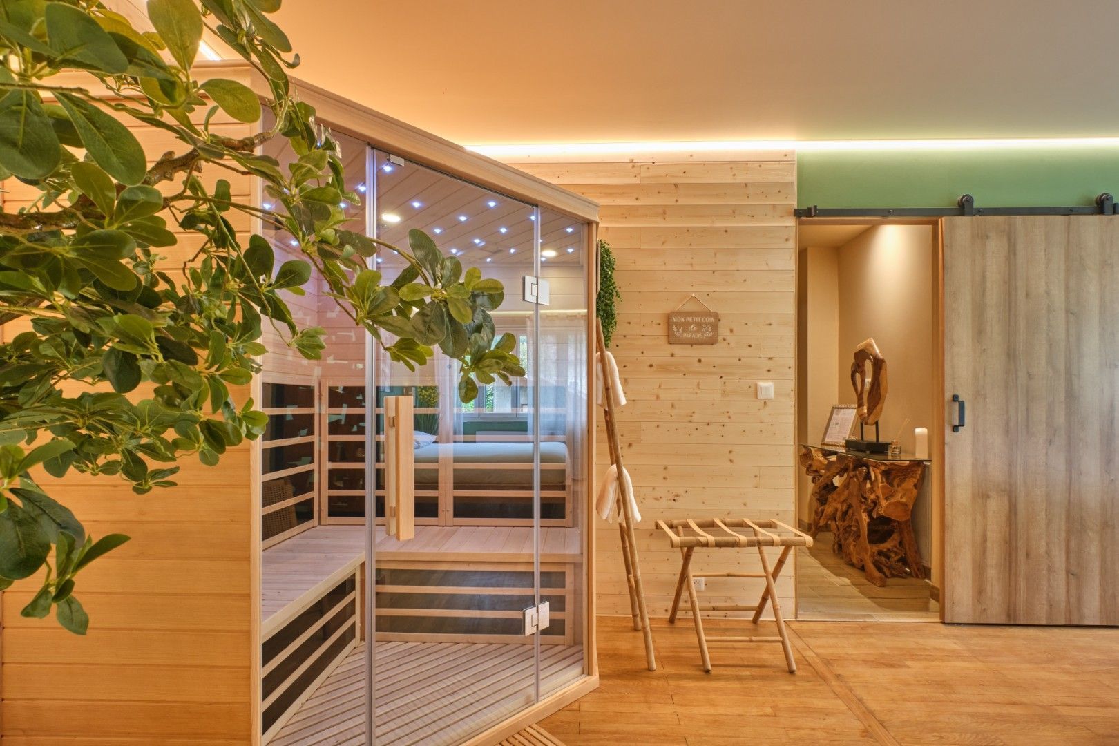 The room is tastefully decorated, warm, and designed for total relaxation. The private sauna and jacuzzi are major highlights, ideal for recharging fully.